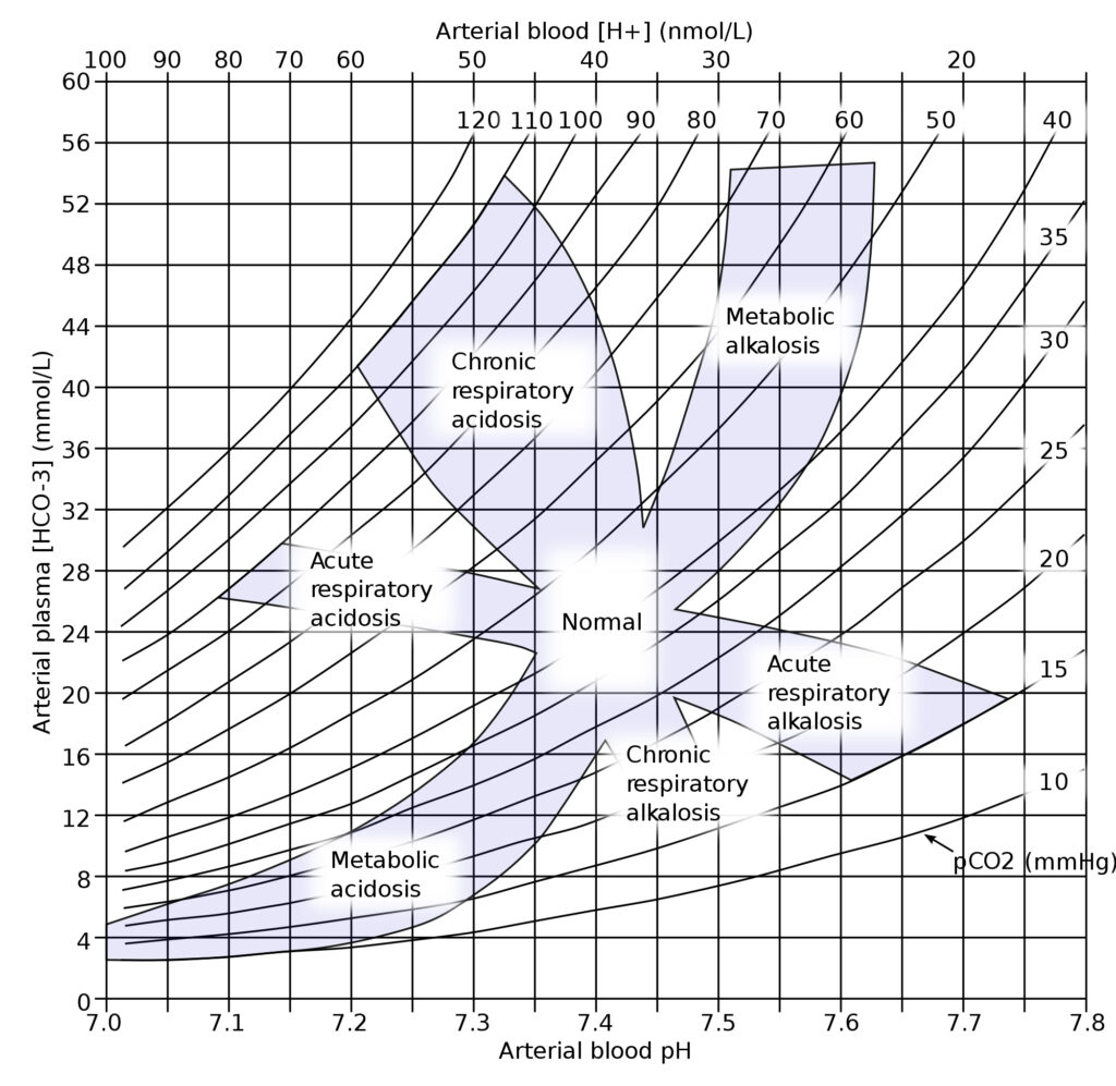 Base excess = the amount of strong acid that must be added to 1L fully oxygenated blood to return the pH to 7.40, at pCO2 40 and temp 37