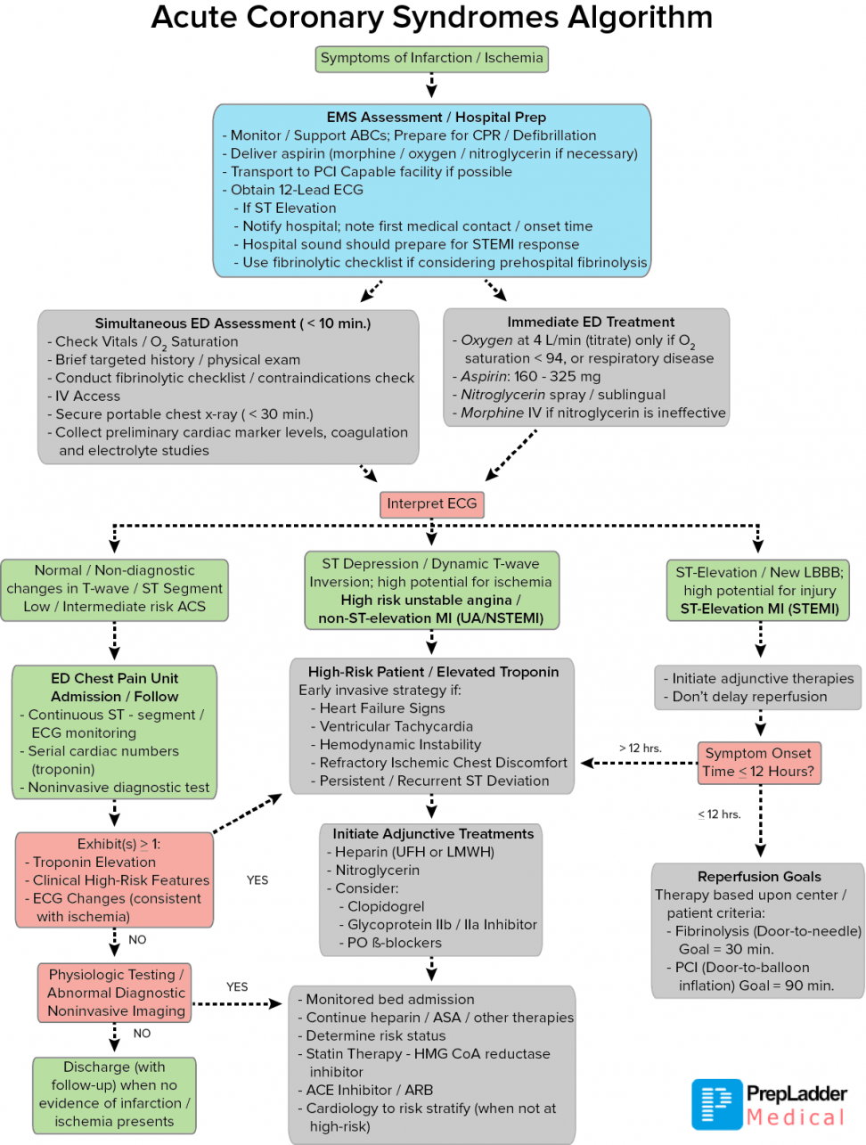 - ALL PATIENTS WITH STEMI –need ASA, antiplatelet (P2Y12 or glycoprotein IIb/IIIa inhibitor), BB (oral within 24 hours, unless contraindicated), ACE-I, statin and referral to cardiac rehabilitation